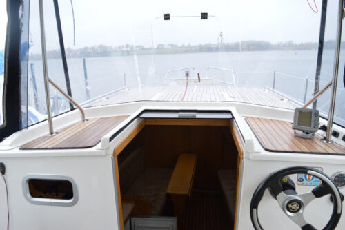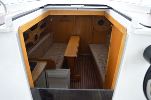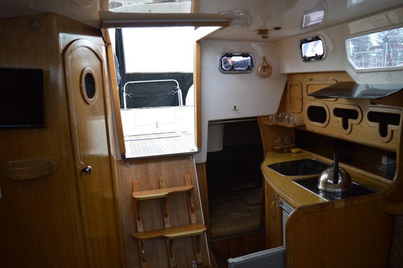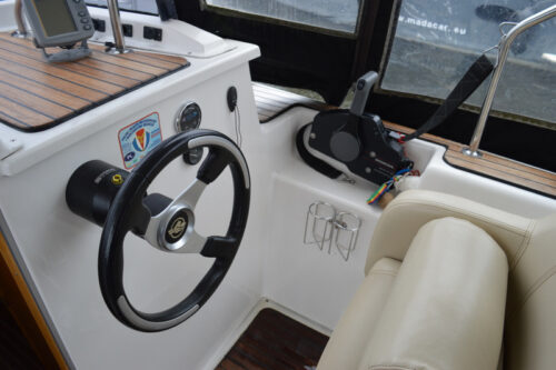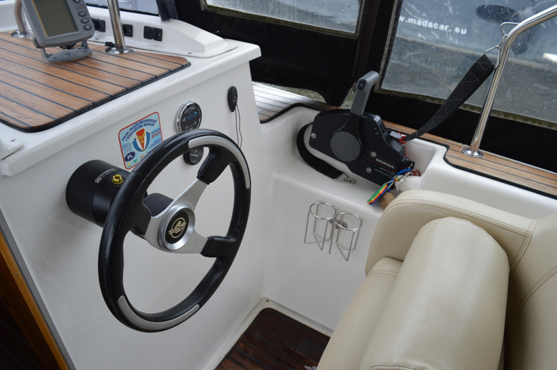 Calipso 750 to nowoczesna,bardzo wygodna spacerowa łódź motorowa na której komfortowo podczas rejsu może mieszkać sześć osób. Posiada stałe zadaszenie nad obszernym kokpitem wraz z roletami ,które zapewniają komfortowe pływanie nawet podczas deszczowych dni.Duża platforma kąpielowa z drabinką na rufie,pozwala na wygodne wchodzenie i wychodzenie z wody także dzieciom.Kolejny atut Calipso 750 to łatwość prowadzenia , nie sprawia kłopotu nawet osobom,które nie posiadają żadnego doświadczenia motorowodnego.